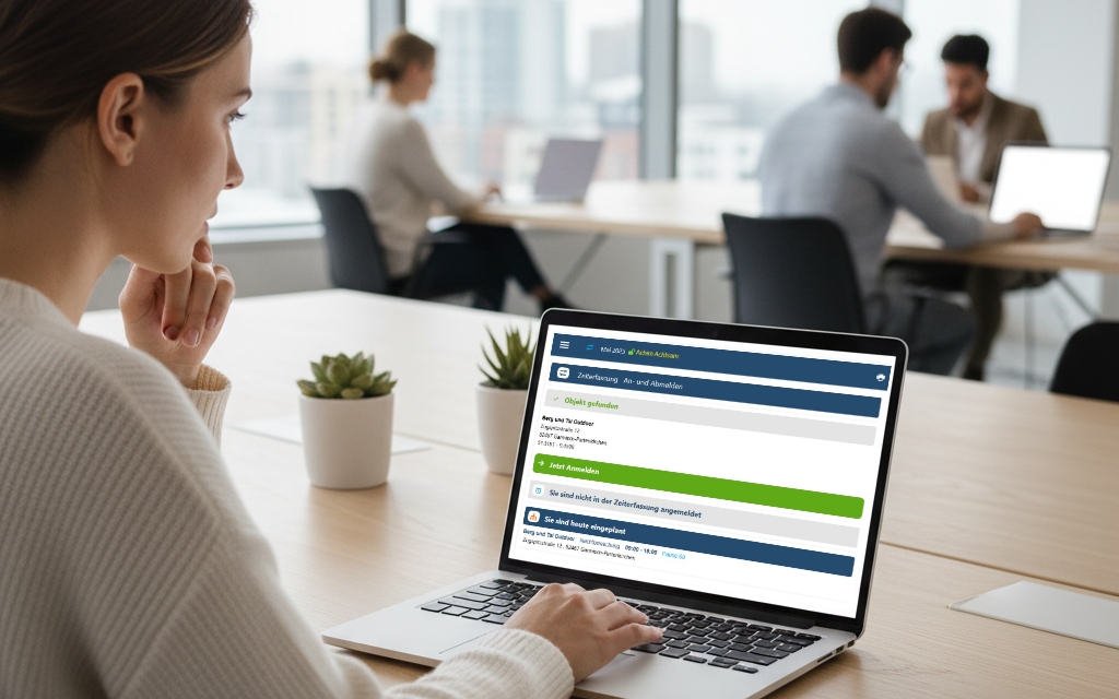 Digitale Arbeitszeiterfassung in Echtzeit per Festnetztelefon, Browser, Terminal oder Android-App.